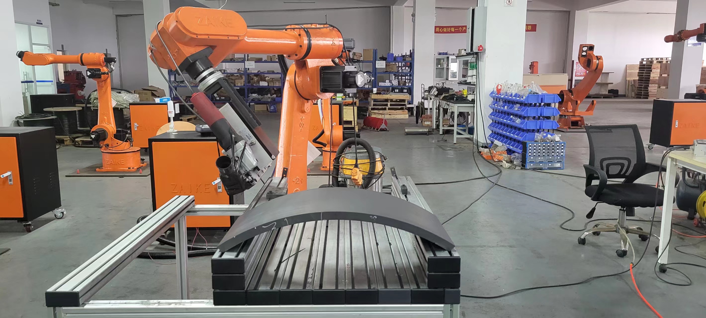 n 载科机器人生产线可以同步完成新能源热交换石墨件的自动搬运及自动打磨抛光